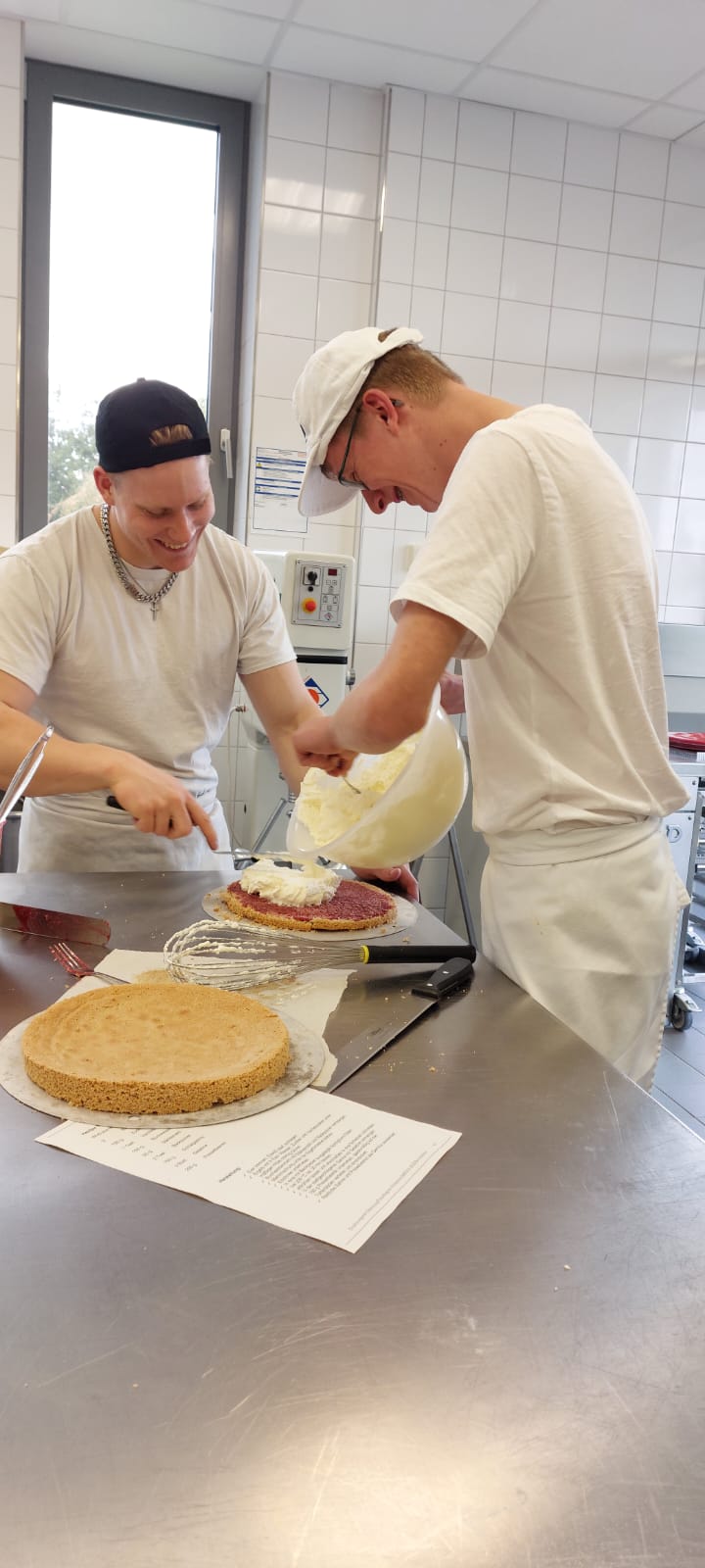 Im praktischen Teil des Projekts haben wir aus Buchweizenmehl Biskuitböden gebacken. Diese wurden anschließend mit erschiedenen regionalen Früchten wie Pflaumen, Kirschen oder Preiselbeeren gefüllt. Zum Abschluss haben wir die Tortenböden mit frischer Schlagsahne ausgarniert – ebenfalls aus regionaler Herkunft.